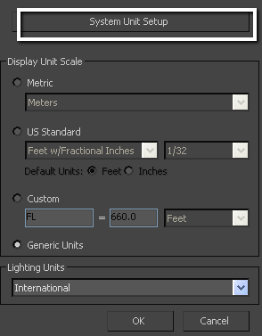 The plug-in determines the default units by looking at the System Unit Scale in the System Unit Setup dialog box in 3ds Max. For information about incorrect or unwanted scaling issues, see Why is my scene scaled differently in 3ds Max?