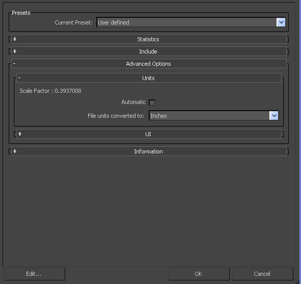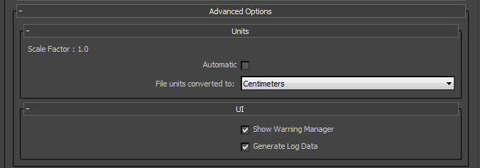 When you activate the Automatic option, the File Units converted to option is disabled, although it shows the resolved unit & Scale Factor. If you disable the Automatic option, the File Units Converted To menu becomes available.