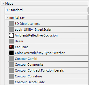 When a mental ray renderer is active, the Material/Map Browser also lists mental ray shaders. Shaders are similar to maps, and you assign them the way you do maps.