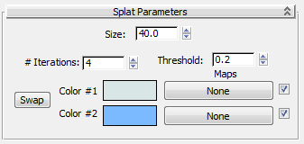 Splat is a 3D map that generates a fractal surface pattern that is useful as a Diffuse Color map for creating a pattern similar to spattered paint.