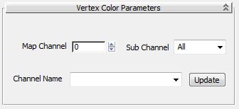 After assigning the material with the Vertex Color map to an object with named map or vertex-color channels (see Channel Info Utility), you can click Update, and then, from this drop-down list, choose a named map channel from the object.