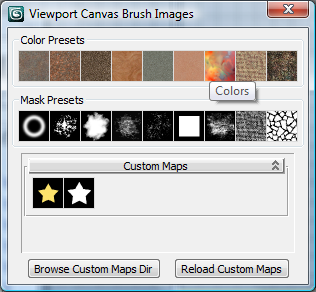 Choose a color image to paint with. The presets are fixed; to use your own brushes, see Custom Maps, following.