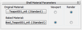 Use these buttons to choose which material appears in shaded viewports: the original material (upper button) or the baked material (lower button).