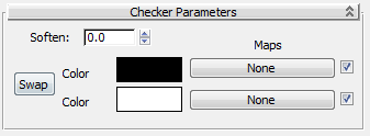 When Soften equals 0.0, there is a hard edge between the checker colors. Low positive values soften or blur the checker boundary. Larger Soften values can blur the entire material.