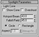 These parameters control hotspots and falloff for spotlights.