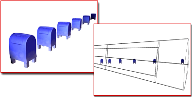 Tip: If your scene has a large number of lights, use Far Attenuation to limit the portion of the scene each light illuminates. For example, if an office area has rows of overhead lights, you could set Far Attenuation ranges to keep the lights’ illumination from being calculated when you render the reception area instead of the main office. As another example, a staircase might have recessed lights on each stair, as many theaters do. Setting a small Far Attenuation value for these lights can prevent their (negligible) illumination from being calculated when you render the theater as a whole.
