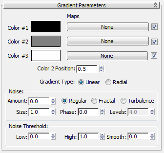 - On the Gradient Parameters rollout, click a map button to assign a map to a color.