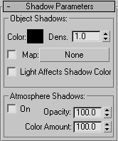 The Shadow Parameters rollout is displayed for all light types except Skylight and IES Sky, and for all shadow types. It lets you set shadow colors and other general shadow properties.