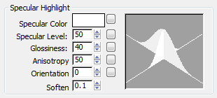 As in standard materials, as you adjust the values in this group the highlight curve at the right changes to give you an idea of the effect. The material preview in the sample slot also updates.