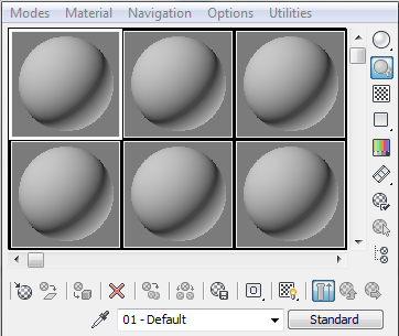 Above the Material Editor sample slots is the menu bar. Below and to the right of the sample slots are buttons and other controls that you use to manage and change maps and materials.