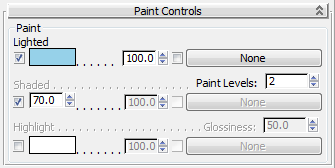 Paint is the main color of the material, and has three components. This section describes the components first and then their common controls.