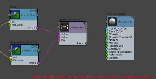 In the ShaderFX editor for your Interactive network, if you perform an illegal operation, such as multiplying a float2 by a float3, you obtain an error :Swatch Rendering not supported for this node at this time" when you click the Render Swatch