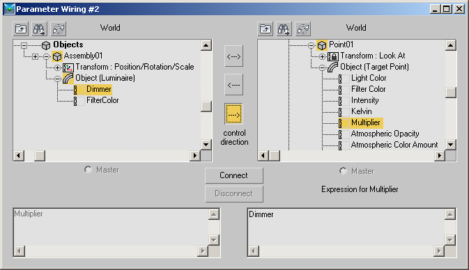 You can also use this method to wire the luminaire's Filter Color parameter to any light sources' color settings.