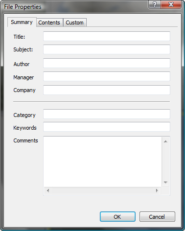 File Properties allows you to enter information about a scene that can later be read by Windows, using a program such as Windows Explorer to view the properties of the scene file.