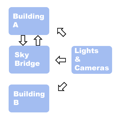 But the artists working on Building A and the artist working on the sky bridge need to see each other’s work to make sure everything lines up. The obvious solution would be to externally reference each other’s scene file: