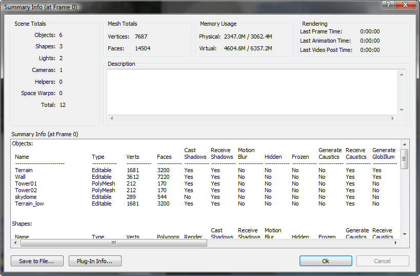 Summary Info displays statistics about the current scene.