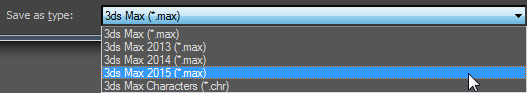 From the Save As Type drop-down list, choose an earlier version of 3ds Max. You can save to formats as early as 3 versions prior to the current version.