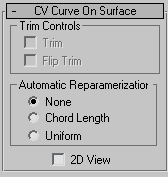 Displays the Reparameterize dialog to let you reparameterize the CV curve on surface.