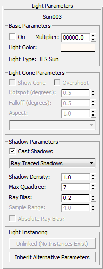 Adjusts settings for an IES Sun or Standard sun light, or for any light that is not a sun light.
