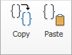 When a buffer contains a stored selection, its Copy button turns blue. When empty, the button background is white.