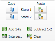Combines the two stored selections and applies the selection at the current sub-object level, emptying both Store buffers.