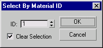 When on, replaces the current selection (if any) by the material ID selection. When off, adds the material ID selection to the current selection set.