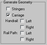 Creates an inclined, notched beam under the treads which supports the steps or adds support between the stringers of the stairs. You might also know this as a carriage piece, a horse, or a rough string. See Carriage rollout to modify the parameters.