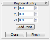 Keyboard entry for lines is different from keyboard entry for other splines. Entering keyboard values continues to add vertices to the existing line until you click Close or Finish.