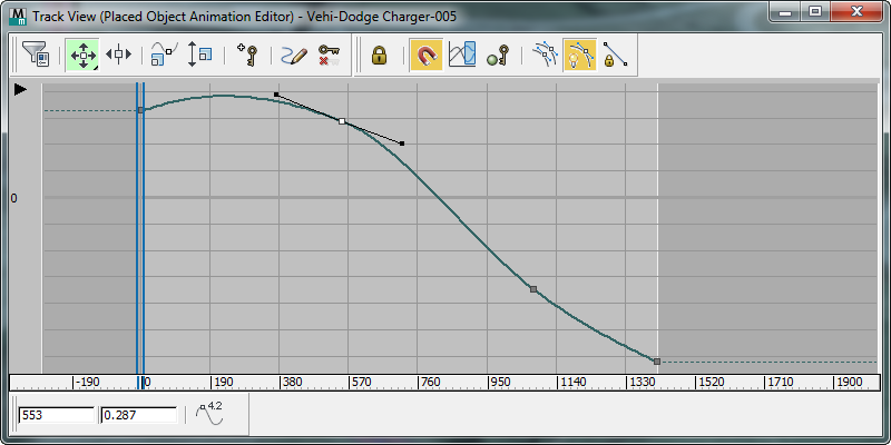 The Placed Object Animation Editor displays motion as a series of function curves on a graph. Motion in 3ds Max is defined by a series of
