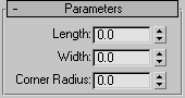 Creates a Rectangle spline from the keyboard. Use the X/Y/Z settings to specify the center point, and the remaining parameters to specify the dimensions and corner radius, then click Create. After creating the spline, you can use the Parameters rollout controls to adjust its settings (see following).