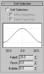 The Soft Selection rollout for point and CV sub-objects contains the controls for this feature. The Soft Selection checkbox is turned off by default.