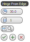 Click Pick Hinge, and then click an edge to be the hinge. After you designate a hinge, the circle in the button icon is filled in, and when you hover the mouse over the button, the label is “Edge #” where # is the ID number of the hinge edge.