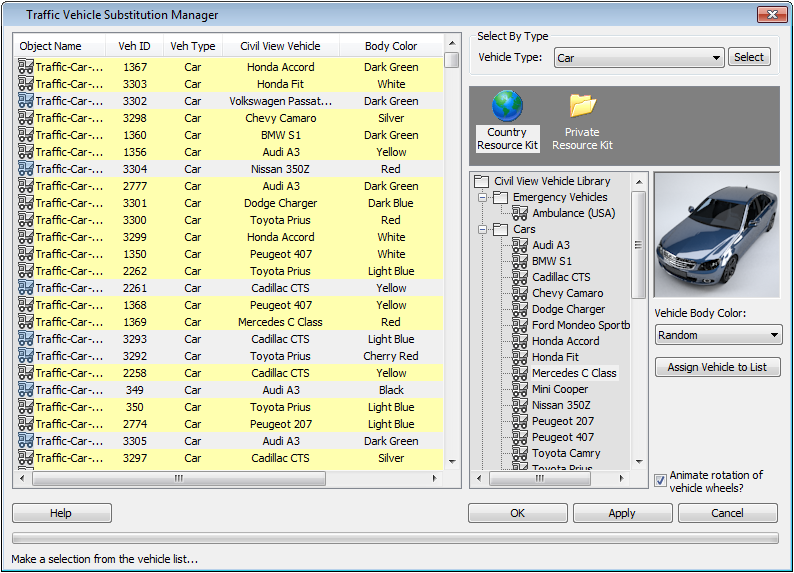 Lets you choose random or individual Civil View vehicle types to apply to selected entries in the vehicle object list.