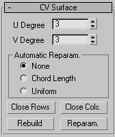 Displays the Rebuild CV Surface dialog, which lets you specify how to rebuild the surface. Rebuilding the surface can change its appearance.