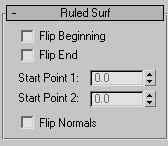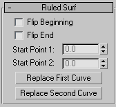 When you turn on the Ruled button, and while a ruled surface sub-object is selected, a rollout with the ruled surface parameters is displayed at the bottom of the Modify panel.