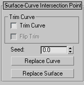 While a surface-curve intersection point sub-object is selected, a rollout with its parameters appears.