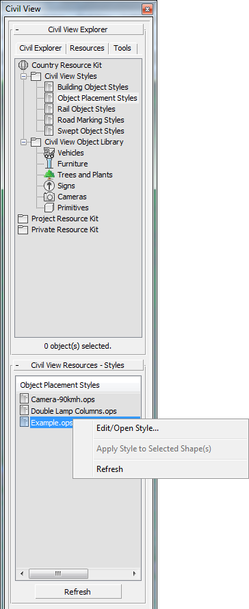 Provides access to all styles and object definitions in the active Civil View Resource Kits.