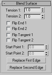 While a blend surface sub-object is selected, a rollout with the blend parameters is displayed at the bottom of the Modify panel.
