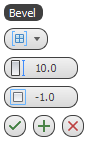 Beveling involves first extruding polygons and then scaling the extruded polygons. Use these settings for beveling polygons in Interactive Manipulation mode.