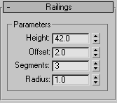 These controls are available only when you turn on one or more of the Handrail or Rail Path options on the Parameters rollout