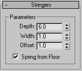 This rollout lets you set the stairs object's name and color. For detailed information, see Object Name and Wireframe Color.