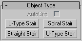 You can create four different types of stairs in 3ds Max: Spiral Stair, Straight Stair, L-Type Stair, or U-Type Stair.