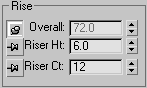 3ds Max keeps one Rise option locked while you adjust the other two. To lock an option, you click a push pin. To unlock an option you click a raised push pin. 3ds Max locks the spinner value of the parameter with the depressed push pin and allows the spinner values of the parameter with the raised push pins to change.
