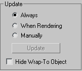 Tip: You can animate the conforming effect by morphing between the compound object and a previously made copy of the original wrapper object. To do this, however, you must turn on Hide Wrap-To Object in the Update group so that the original object and the compound object have the same number of vertices. Using this technique, you can effectively morph between two objects with a different number of vertices.