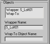 Lists the Wrapper and the Wrap-To objects. Click to select an object in the window so that you can access it in the Modifier stack.