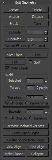 For information on the Selection rollout settings, see Selection Rollout (Editable Mesh).