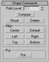 The six buttons in this group let you align the selected shape in relation to the path. Looking down at a shape from the viewport in which it's created, the orientation is left to right along the X axis, and top to bottom along the Y axis.