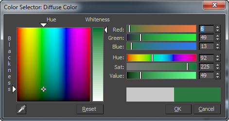You can use the Color Selector to specify various color parameters including light colors, material colors, background colors, and custom object colors. (Another way to choose an object's viewport color is to use the predefined colors in the Object Color dialog.)
