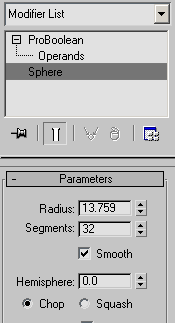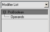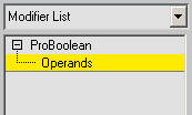 When one, and only one, operand is selected, the object type (not its name) appears as a separate stack entry below the ProBoolean entry. Clicking this entry provides direct access to the operand's parameters on the Modify panel.