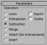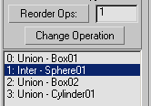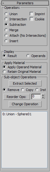You can then select one or more operands, either by using standard selection methods in the viewport, or by highlighting their names in the hierarchy view list at the bottom of the Parameters rollout.